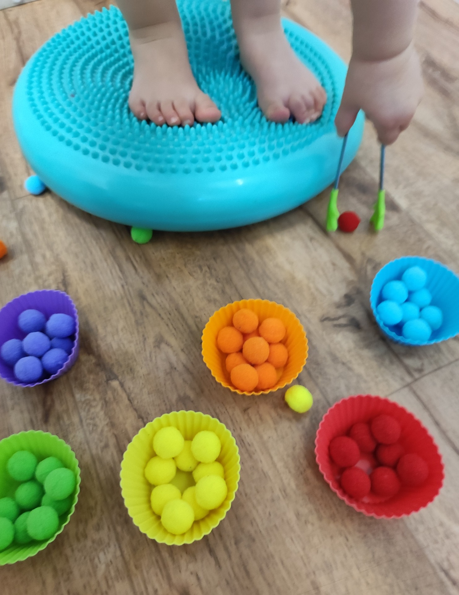 - s rozvojem hrubé a jemné motoriky (cílená motorika horních končetin)